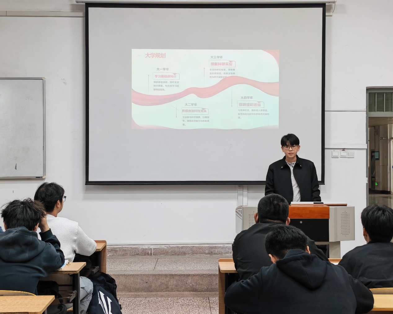 “智育综测双第一、计算机二级证书、《煤炭学报》论文收录、3项国家级竞赛奖项……”胡盛炫同学的履历让同学们赞叹不已。他以“大学四阶规划”为脉络,分享了自己的成长路径:大一时,聚焦基础课学习,为专业深耕筑牢根基;大二时,积极投身“揭榜挂帅擂台赛”等科技竞赛,在实战中锤炼能力;大三时,主动接触科研实验,为学术发展铺路;大四时,研究生提前进组,实现学业的高效衔接。